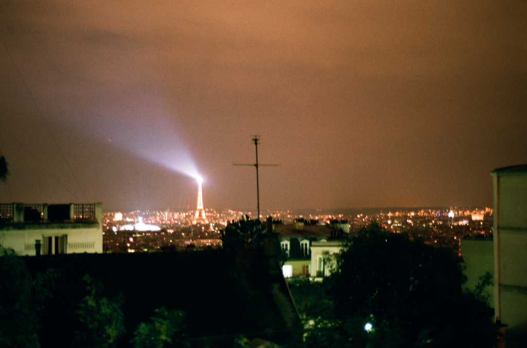 Eiffel Tower from atop Montmartre at night